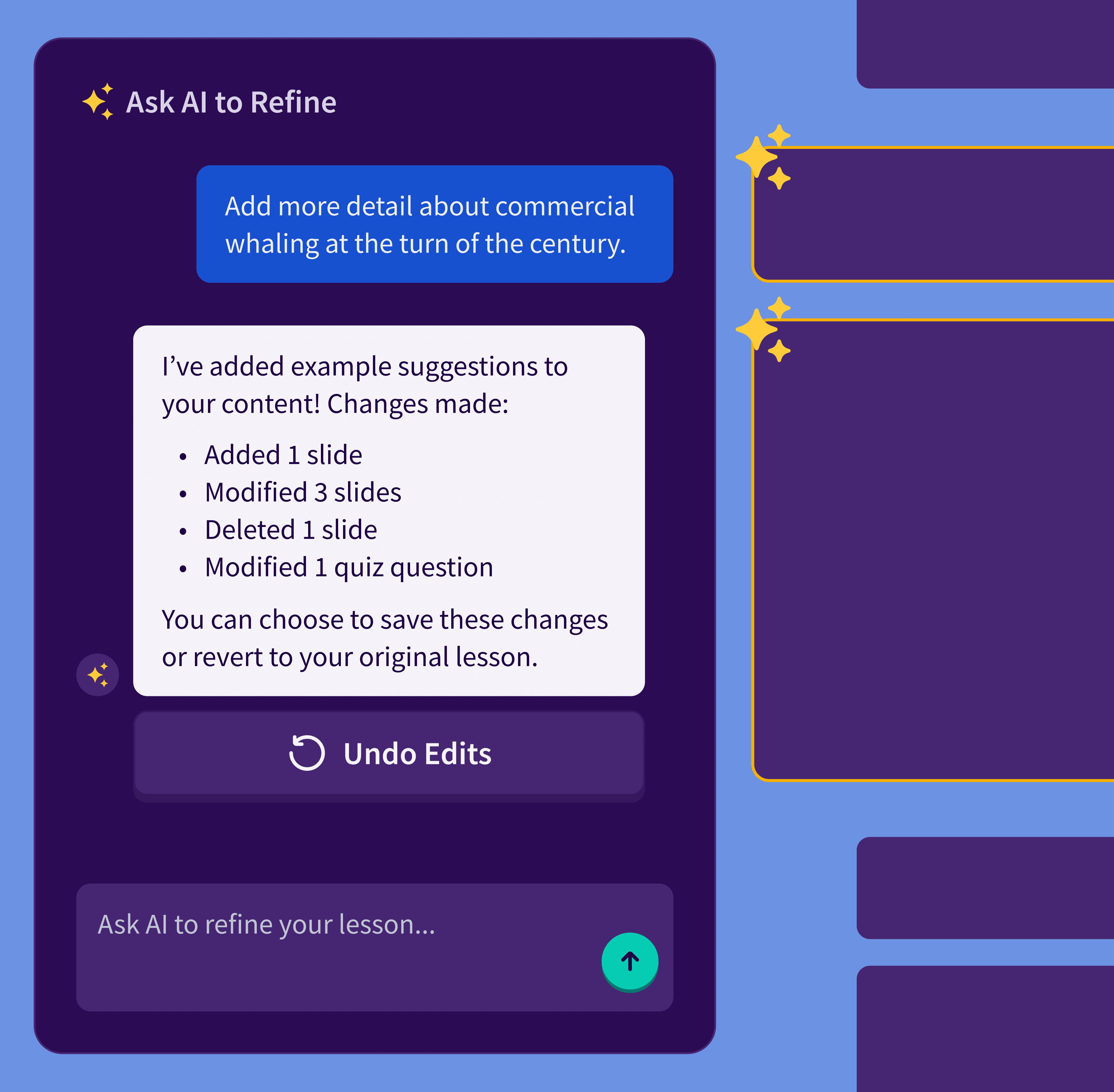 AI-powered admin tool to easily re-work generated micro lessons.