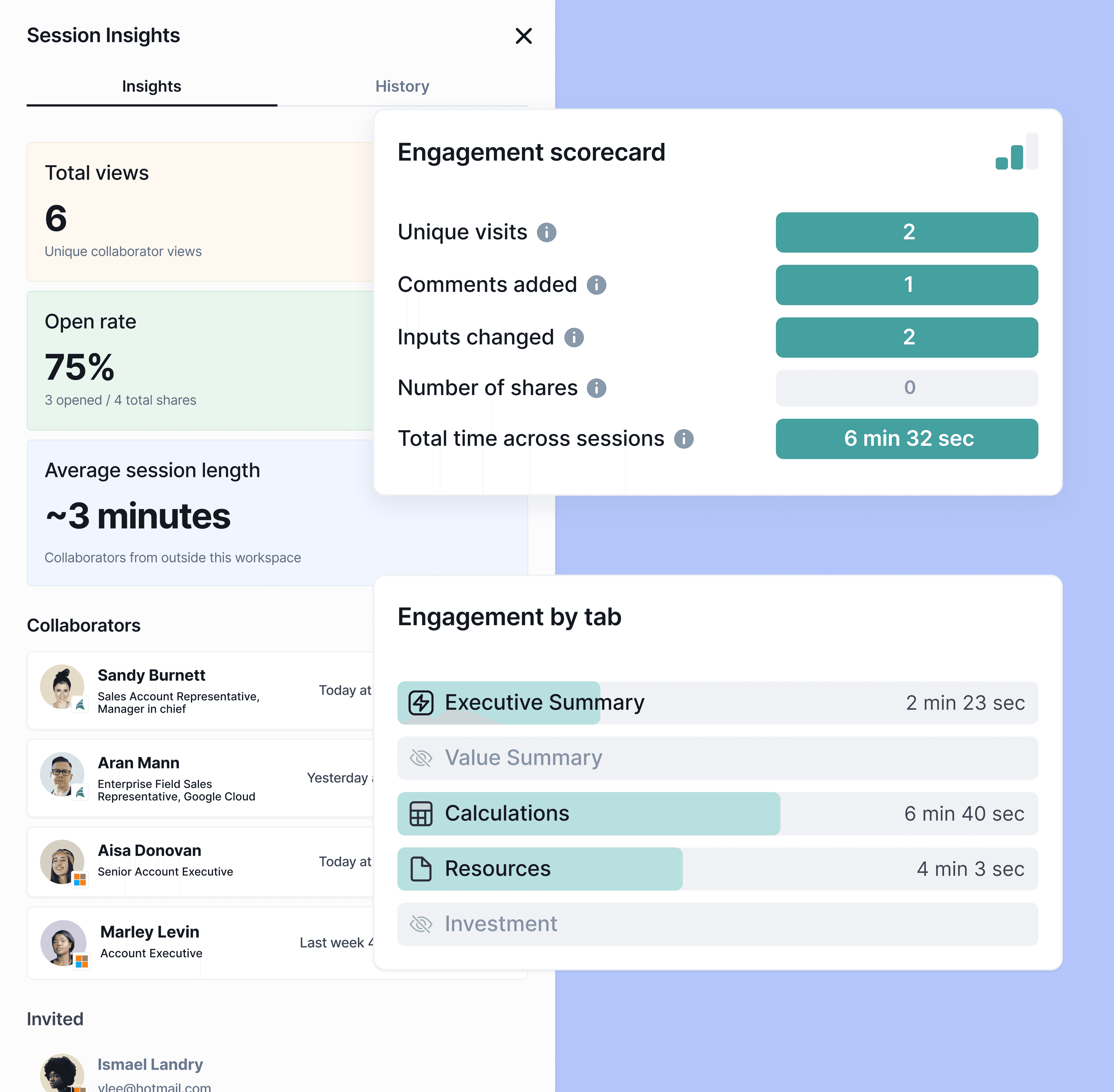 Explore user engagement in documents with actionable insights and an activity log.