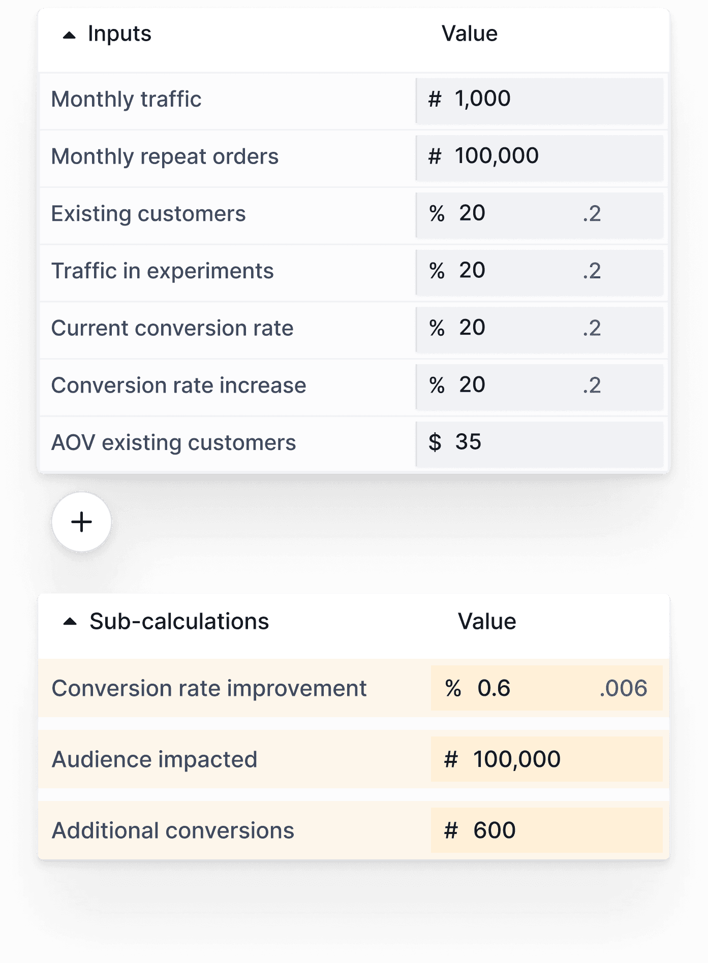 Duplicate calculations and revert to old versions, edit inputs in a spreadsheet-inspired UI and see the overall output change.