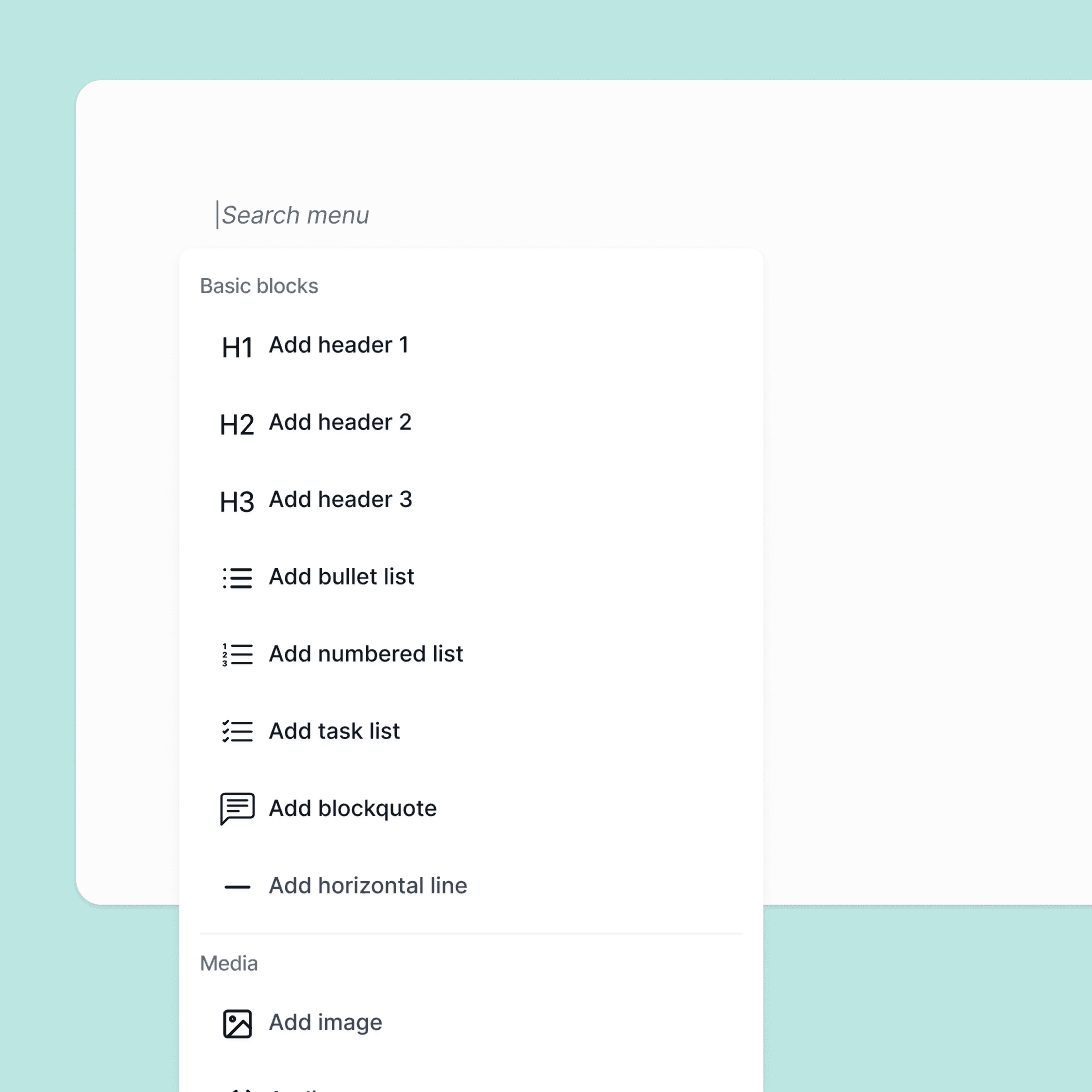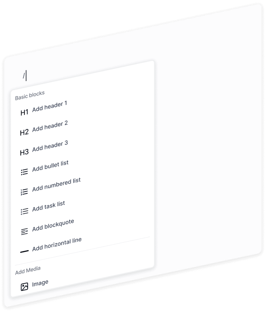 After reviewing competitors, I familiarized myself with TipTap block editor suite, the dev team's toolkit we would need to accommodate. Tiptap guided the majority of the formatting and block functionality decisions. The main creative focus was on how to guide the user to action, make sure AI features were visible and easy to use, and create a clean and focused interface.