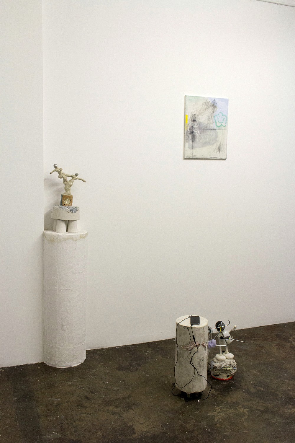 High Jump was Mimi's first solo exhibition. We met her (and her work) at her senior BFA show at the Art Instutite and were completely charmed and captivated. Her work is embodied and stares back at you. It invites the viewer into a universe where all the humans have died, and our items continue on, dragging themselves around, whirring, scraping and chattering.