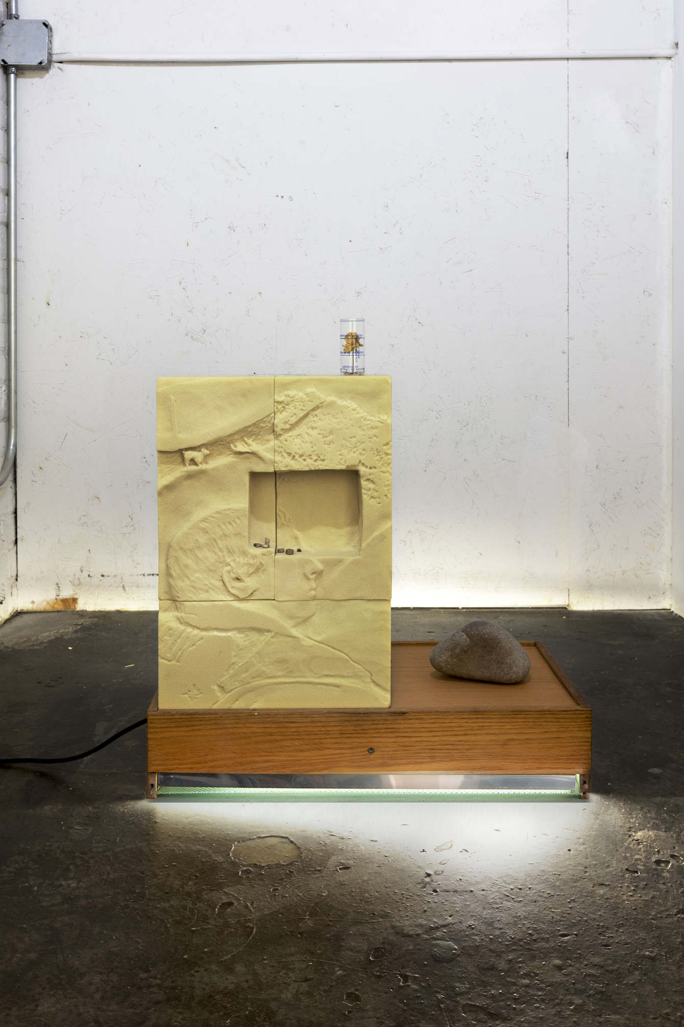 In a sparsely multilayered environment Cohen’s work manages to deliver materially without compromising the diagrammatic nature of his concerns. With a tactile approach to making he marks the empirical relapse of systems of belief from different origins and their return/departure from the human body. Pencil drawings, meteorite debris and rubber; radio transmitters, high-density foam and other fabrication-shop paraphernalia create an idiosyncratic amalgam. These personal idioms and material elements that live between the fabricated and the handled stand in contention with (and occasionally mirror) vocabularies from a local scene that turns global and viceversa--aren’t we all under the same sky? –he mumbled¬– while the boat hull slid through the wet sand.
