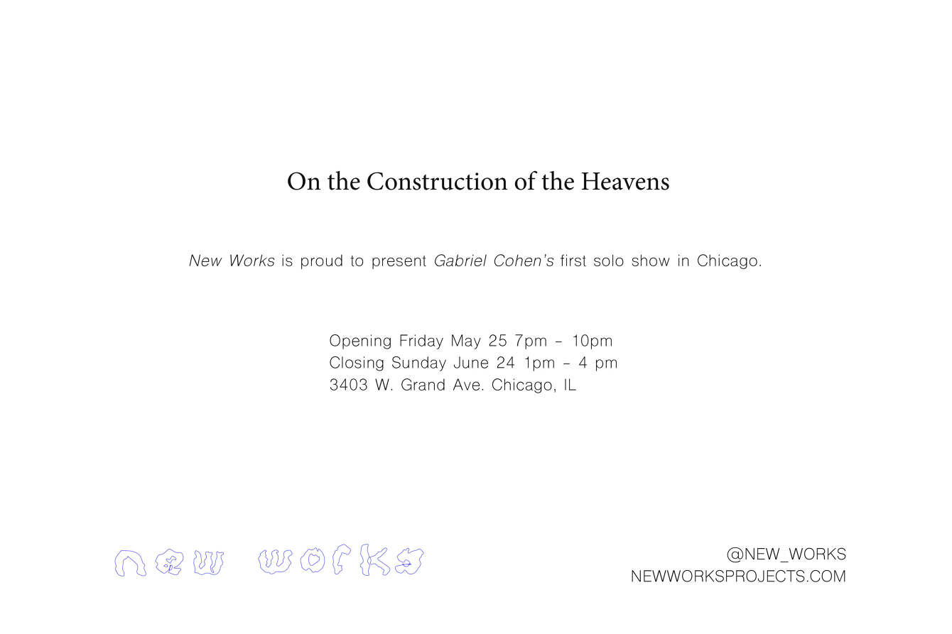 New Works is proud to present Gabriel Cohen’s first solo exhibition in Chicago: On The Construction of the Heavens.